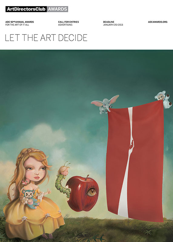 The Art Directors Club New York has a long tradition of supporting arts & crafts in advertising. As a Call for Entries of the ADC 92nd annual awards, we came up with “Let the art decide”, this concept reinforces that the best art&craft work would be judged by the world’s leading art experts. The idea comes alive as one of Yoshitomo Nara’s dog sculptures evaluates some of the year’s best advertising work, along with other “art experts” in the print scene.